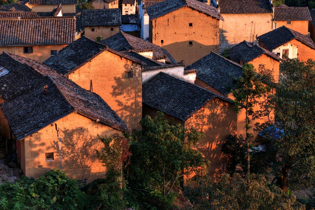 9月18日,夕阳照耀下,阳产村土楼树影婆娑(无人机照片)。新华社记者 黄博涵 摄