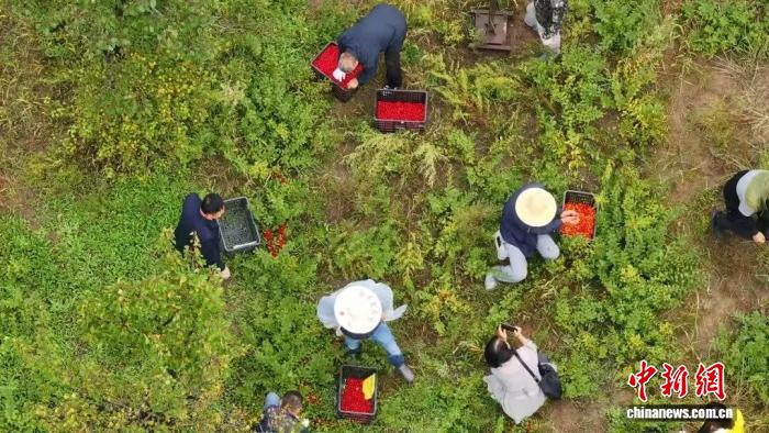 村民正在采摘钙果。 万柏林区委宣传部供图