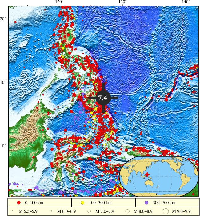 中新网10月10日电 据国家海洋环境预报中心网站消息,2025年10月10日09时43分(北京时间),菲律宾群岛地区海域(7.55°N,127.0°E)发生7.4级地震,震源深度为50千米(震源参数修订)。自然资源部海啸预警中心根据最新监测分析结果,此次地震已在震源附近引发局地海啸,但不会对我国沿岸造成影响。