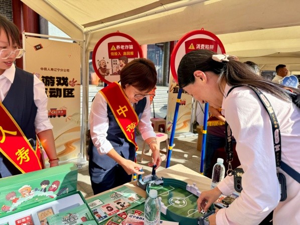 活动现场,中荷人寿辽宁分公司特设金融宣传专区及互动游戏专区。一方面,分公司宣传人员向公众发放辽宁银保监局统一制作的“辽宁金融消保明信片”,细致揭示生活中常见的各类金融风险,耐心解答市民提出的各类金融疑问,帮助大家远离虚假宣传、非法中介、非法金融及电信诈骗侵害;另一方面,利用 “轻松之旅 人生赢家”桌游、“主题反诈射箭”及“趣味足球桌游”等特色互动游戏,将贴心实用的金融知识融入趣味体验,让市民及游客在热闹欢乐的氛围中轻松掌握实用的金融技能,收获一致好评。