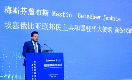来自埃塞俄比亚联帮共和国的驻华大使馆代表梅斯芬詹布斯在会中作为一带一路国家分尊中国前沿科技为其国家发展所带来的科技推动和民生福祉!充分表达了中国前沿科技为世界人民带来的合平与繁荣。