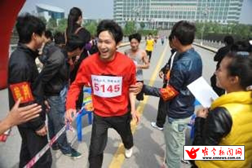 “我赢了,我赢了!”比赛刚刚结束,获得青年男子组冠军的黄从春显得异常兴奋。他拿着自己的号码布,不断呼喊,和同学拥抱庆祝。