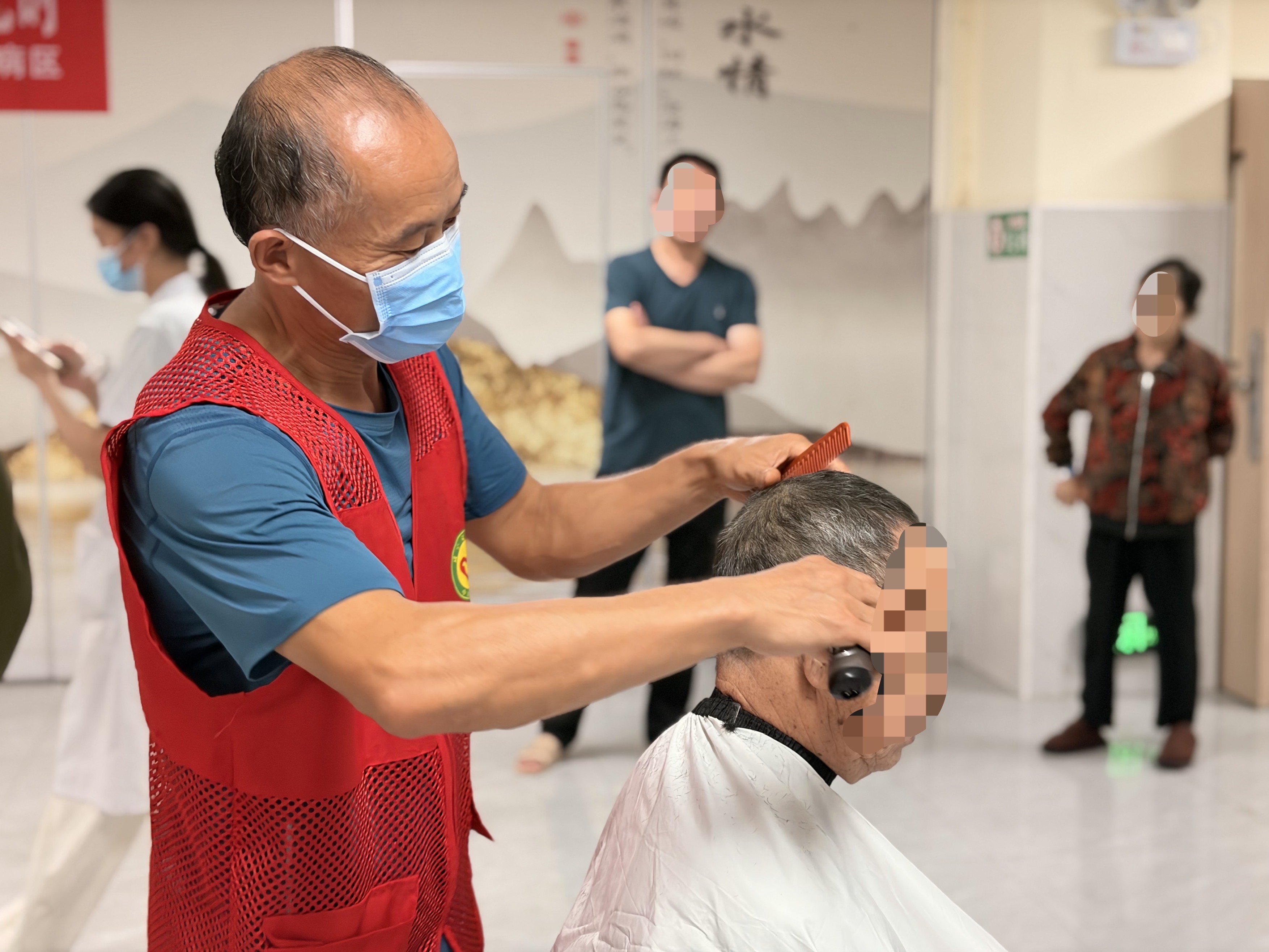 此外,志愿者们还分组为老人们提供理发、剪指甲服务,他们耐心的询问老人“想要什么样的发型 ?”“这样的长度可以吗?”等等;剪指甲时,志愿者们提前对指甲刀进行了消毒处理,动作轻柔地为老人修剪指甲,对于情绪稍显不安的老人们耐心安抚,用轻柔的动作与温和的话语缓解他们的紧张,整个空间里没有华丽的布置,却因这份细致与用心显得格外温暖。