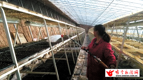 1月20日,在陆溪镇界石村蔬菜合作社,育苗工人正在忙着给土基补充水份和调整暖棚光线及温度。