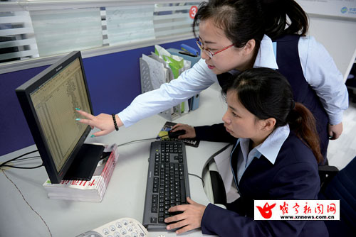 周菲所在组共有10人,都是20多岁的女青年。她们办公里“您好”与敲键盘记录的声音不断。