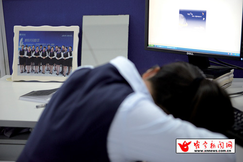 早上8点到晚上9点半的工作时间,全年无休。累了困了,只能午休时间在桌子上趴会儿,便又要投入到紧张的工作当中。