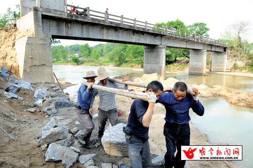 为及时修复清明期间被暴雨冲毁的桥梁及河堤,该村村民自筹12万元资金,启动了工程建设,力争在一个月后修复通行,保障两岸数千名村民安全便捷出行。
