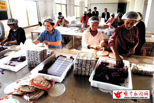 (上图) 1日,湖北通城中天云母制品有限公司员工正加紧生产。去年,公司投资3000万元建成15条生产线,预计年产值超过1.3亿元。