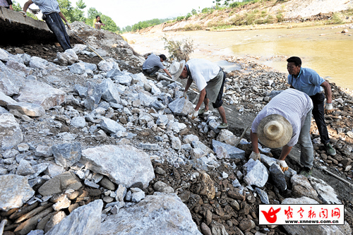 6日,崇阳县沙坪镇泉湖村高庄河担水桥段,当地村民正在修复塌方河堤。据了解,特大暴雨导致部分河堤塌方,该镇积极调配物资、劳力投入到灾后重建。