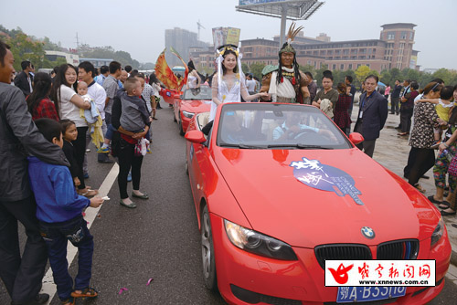 美丽动人的嫦娥仙子降临香城泉都了!昨日上午,大型实景神话音乐剧《嫦娥》几名主要角色演员身着演出服装,乘坐8辆敞篷车,在温泉和永安城区巡游。巡游队伍所到之处,吸引了众多市民的目光。据悉,《嫦娥》将于9月26日在香泉映月生态旅游度假区上演。 庞赟 张仰强/摄