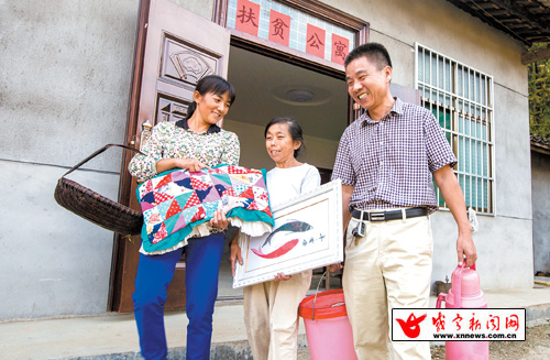 9日,通山县闯王镇坳坪村村干部正在帮助孤寡老人徐爱想移居到该村刚建好的扶贫公寓。据了解,该村积极争取资金兴建扶贫公寓,将村里孤寡老人分批移居到公寓,公寓所有权属村委会,可以循环使用。