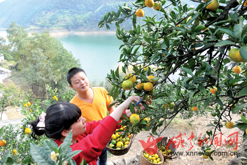 13日,慕名而来的游客,在崇阳县肖岭乡金不村二组的橘园里体验采摘乐。