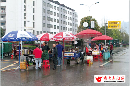 咸宁新闻网讯 (特约记者 甘明强)学校门口马路变成“小吃一条街”,容易造成拥堵不说,还存在一定的交通隐患。日前,有学生家长反映了这一情况。