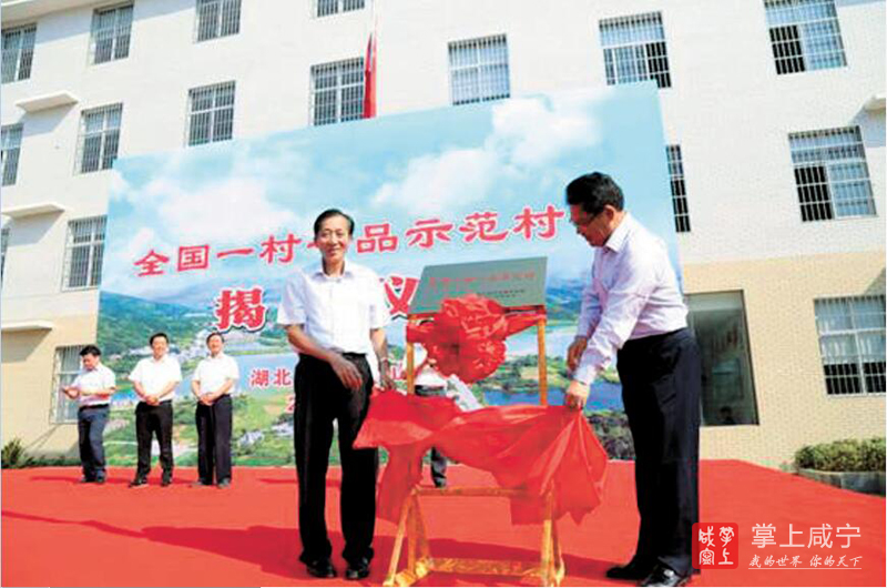 农业部副部长陈晓华、湖北省政府副省长任振鹤为咸宁通山石垅村“一村一品”揭牌