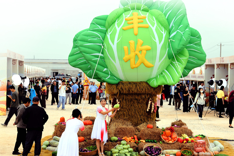丰收的喜悦不仅洋溢在台上,也弥漫在台下的集市里。