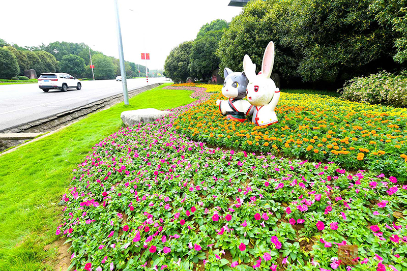 为提升城市“颜值”,市城管执法委园林绿化中心在市人民广场、咸宁北入口、京珠岛双泉休闲广场、嫦娥广场、温泉中心花坛等节点,栽植1700余平方米、约9万盆花卉,孔雀草、矮牵牛、百日红、美女樱等品种错落搭配,传递出节日的喜庆与温馨。