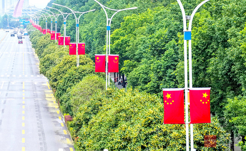 与此同时,1345面鲜艳的五星红旗已在咸宁大道、银泉大道、桂乡大道等主干道旁统一悬挂,一抹抹“中国红”格外耀眼,成为一道亮丽的风景线。