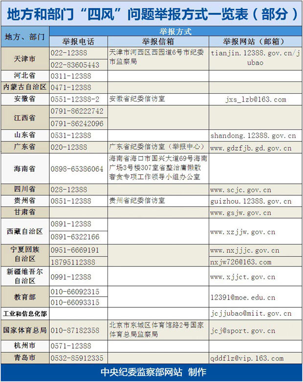 一些地方和部门公布举报方式 欢迎群众监督举报两节不正之风
