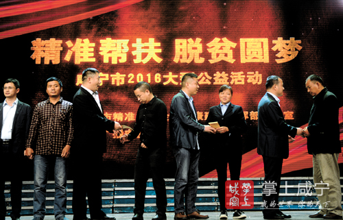 咸宁新闻网讯 咸宁日报记者朱哲、通讯员张敏报道:10月17日,是全国第三个“扶贫日”。17日晚,我市在会议中心举办2016年“精准帮扶·脱贫圆梦”大型公益活动。市委书记李建明出席并致辞,市委副书记、市长丁小强等市“四大家”领导出席。