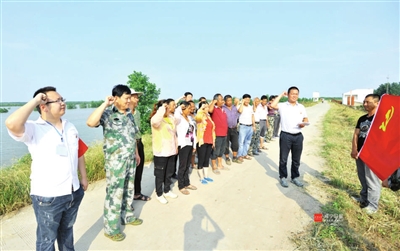 7月3日,全镇14个村党支部将“支部主题党日”开到大堤上,党员“做”在大堤,清障除杂、挖沟导渗,排险除患,用作为凝聚人心。