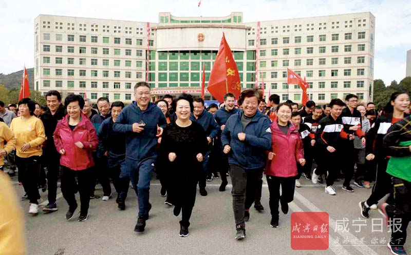 咸宁新闻网讯 咸宁日报特约记者汪淑琴、汪国文、通讯员霍世祥报道: “我宣布县直机关喜庆十九大‘新时代、新征程’系列文体比赛活动正式启动。”2017年12月22日上午8时,随着崇县县委常委、常务副县长程冰野的宣布,发令枪响,该县3000余名机关干部职工纷纷冲出起跑线,向着终点奋力奔跑。